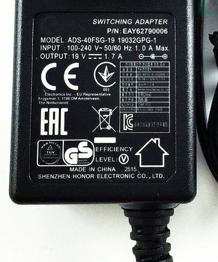 - Output: 19V - 1.7A - 32,3 Watt